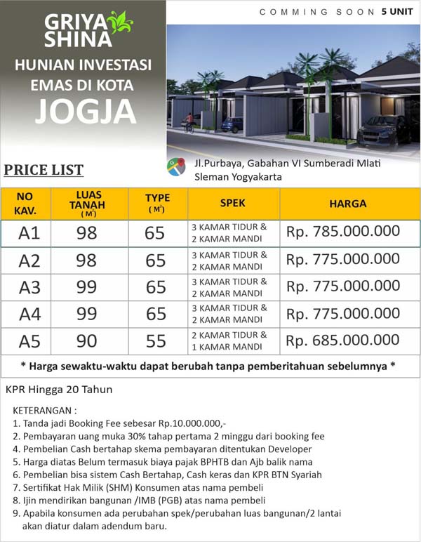 CLUSTER GRIYA SHINA RUMAH BARU MEWAH & MODERN DI MLATI SLEMAN